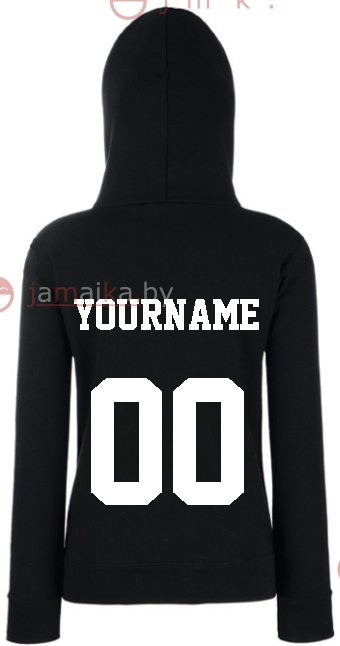 Выбрать цвет и размер женской байки или толтсовки худи, создать принт с именем фамилией и номером и оформить заказ онлайн можно в удобном онлайн конструкторе