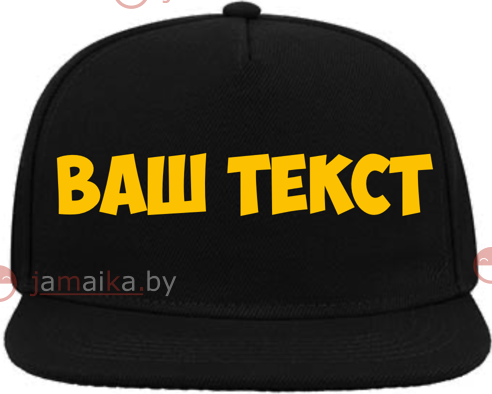 Выбрать цвет кепки снепбек прямой козырек и создать дизайн макета надписи или любого текста, а так же оформить заказ онлайн можно в удобном конструкторе
