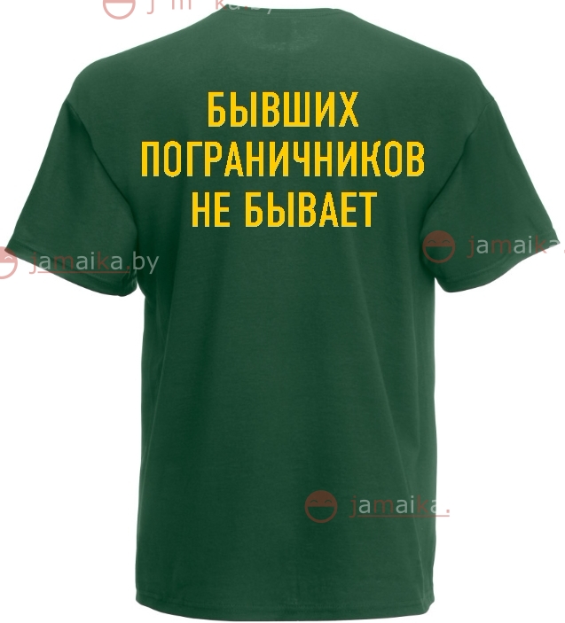 - вариант на темно-зеленой майке с печатью желтым цветом девиза "Бывших пограничников не бывает"